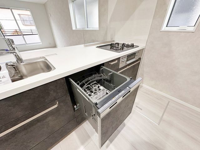 | 設備・条件 | システムキッチンシャンプードレッサー追い焚きカウンターキッチンオートバス温水洗浄便座浴室乾燥機食器洗乾燥機給湯洗面化粧台シューズボックス床下収納全居室収納フローリングTVドアホンバルコニー長期優良住宅宅配ボックス耐震ガス:LPGコンロ:ガス、三口汚水:公共下水(使用可)雑排水:公共下水(使用可)水道:公営水道(使用可)洗濯機置場:室内トイレ:専用 |