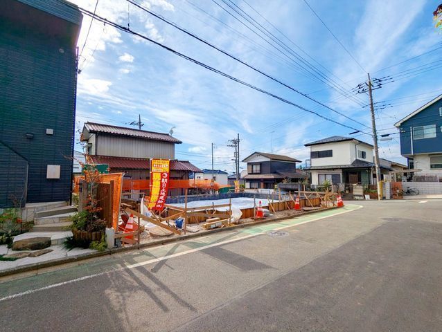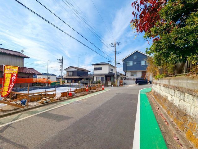 - 【バス停徒歩1分!角地で全室南向きの明るい新築4LDK!】カースペース3台駐車可玄関上部は吹抜けで明るく開放感あり安心の耐震構造+長期優良住宅