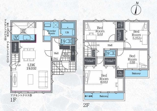 | 部屋 | 1F LDK 19.0帖 、2F 洋 8.0帖 、2F 洋 5.2帖 、2F 洋 5.0帖 、2F 洋 5.0帖 |