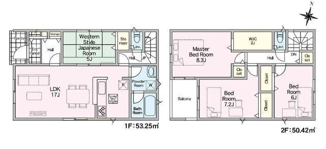 | 部屋 | 1F LDK 17.0帖 、2F 洋 8.3帖 、2F 洋 7.2帖 、2F 洋 6.0帖 、1F 和 5.0帖 |