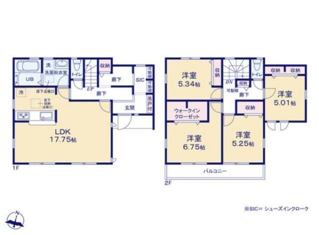 | 部屋 | 1F LDK 17.7帖 、2F 洋 6.7帖 、2F 洋 6.2帖 、2F 洋 5.3帖 、2F 洋 5.0帖 |