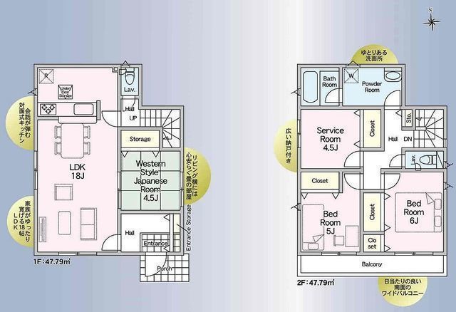 | 部屋 | 1F LDK 18.0帖 、1F 和 4.5帖 、2F 洋 6.0帖 、2F 洋 5.0帖 、2F S(納戸) 4.5帖 |