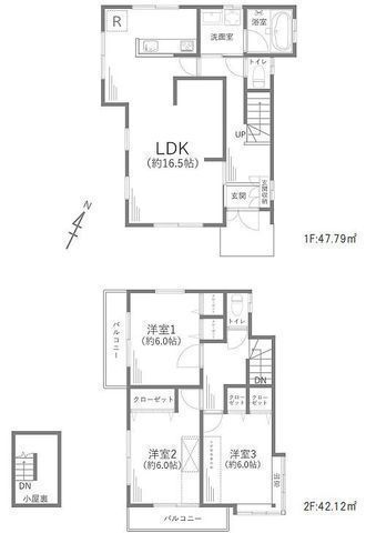 | 部屋 | 1F LDK 16.5帖 、2F 洋 6.0帖 、2F 洋 6.0帖 、2F 洋 6.0帖 |