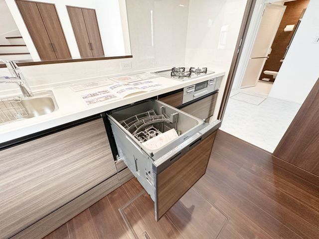 | 設備・条件 | 床暖房システムキッチンシャンプードレッサー追い焚きカウンターキッチンオートバス温水洗浄便座浴室乾燥機食器洗乾燥機給湯照明器具洗面化粧台シューズボックスウォークインクローゼット床下収納全居室収納フローリングTVドアホンバルコニーガス:都市ガスコンロ:ガス、三口汚水:公共下水(使用可)雑排水:公共下水(使用可)水道:公営水道(使用可)洗濯機置場:室内トイレ:専用 |