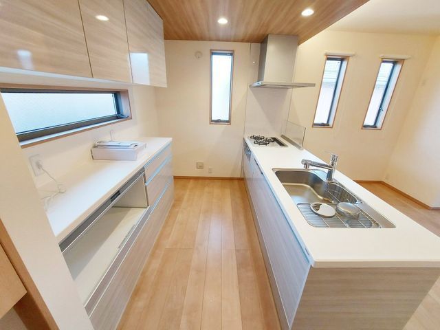 | 設備・条件 | システムキッチンシャンプードレッサー追い焚きカウンターキッチンオートバス温水洗浄便座浴室乾燥機給湯照明器具洗面化粧台シューズボックス全居室収納フローリングTVドアホンバルコニーガス:LPGコンロ:ガス、三口汚水:公共下水(使用可)雑排水:公共下水(使用可)水道:公営水道(使用可)洗濯機置場:室内トイレ:専用 |