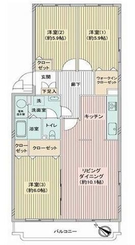 | 部屋 | 3F LDK 10.1帖 、3F 洋 6.0帖 、3F 洋 5.9帖 、3F 洋 5.9帖 |